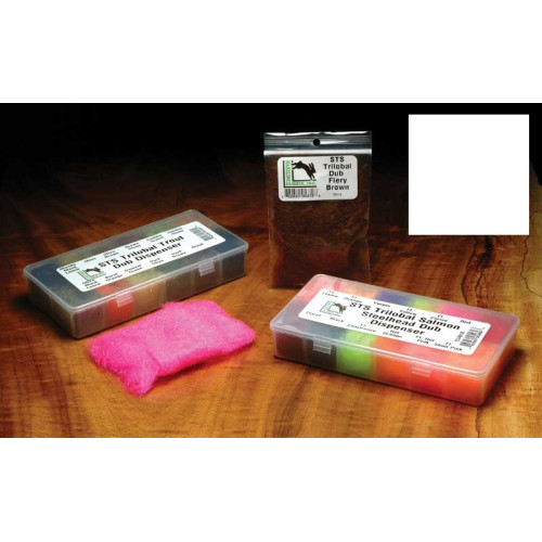 STS - абревіатура слів "Salmon-Trout-Steelhead" (Лосось-Форель-стальноголового лосось). Цей даббінга робиться в неймовірному кількості квітів. Щодо жорсткий з яскраво вираженим блиском, він може застосовуватися при в'язанні мушок для будь-яких видів риб - від морських і щучих стримеров до німф і мокрих мушок на 14-му гачку. Він грубуватий для тел сухих мушок, але може бути використаний при формуванні грудки (Торакс).